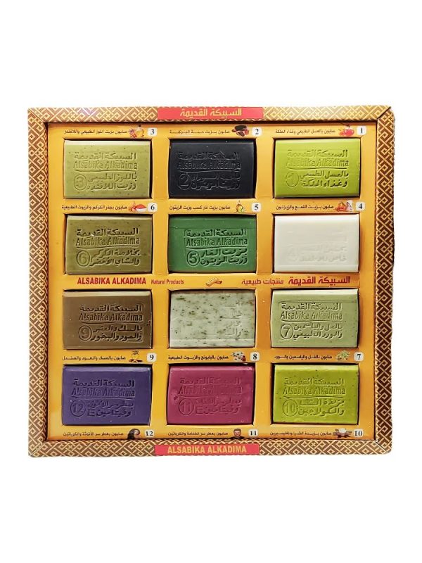 - صابون العطور الداخلة في صناعتها العود والعنبر والمسك والصندل والزعفران والبخور و الورد الدمشقي والطائفي وغبار الذهب ومسك الطهارة ولبان الذكر